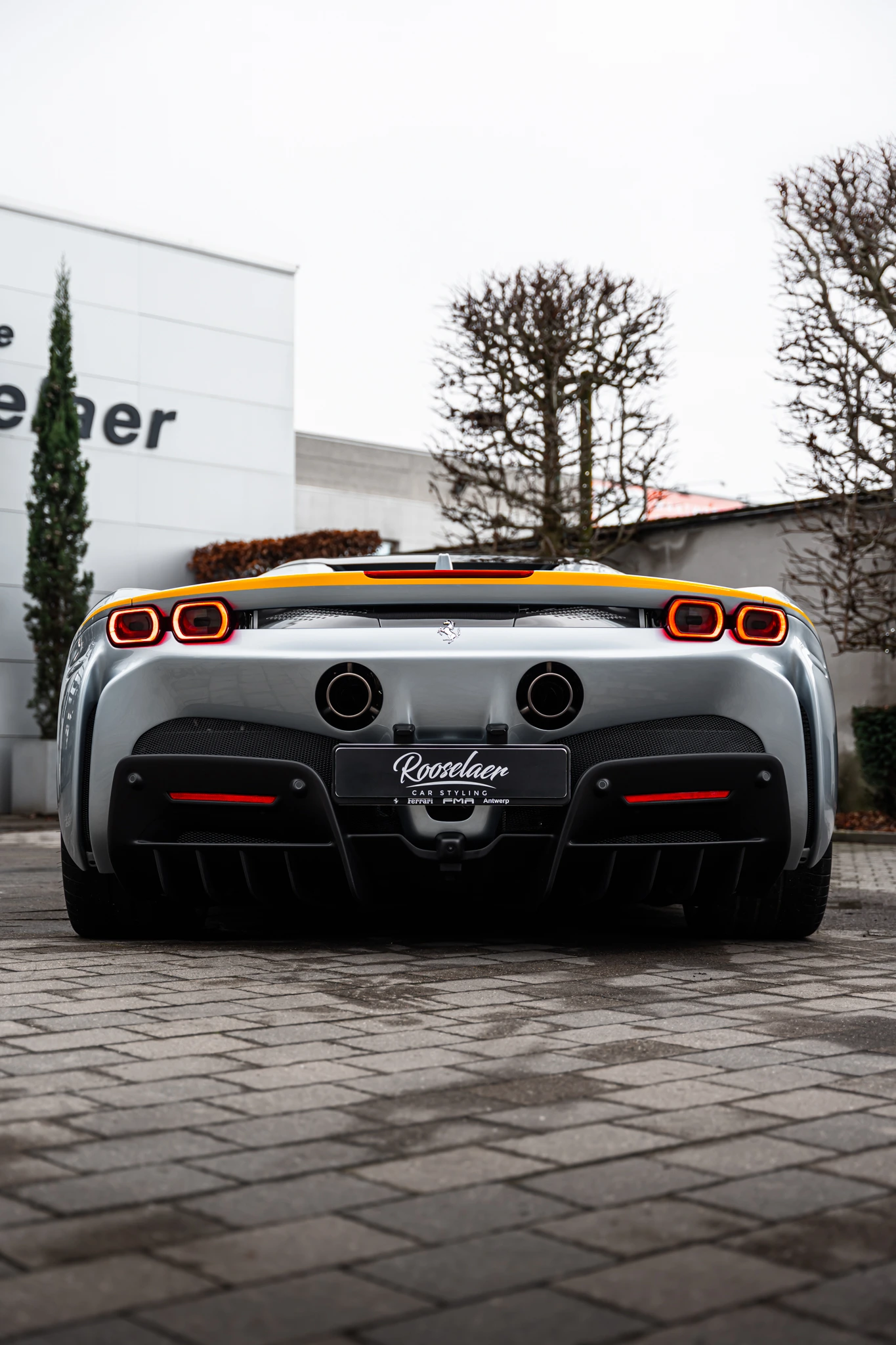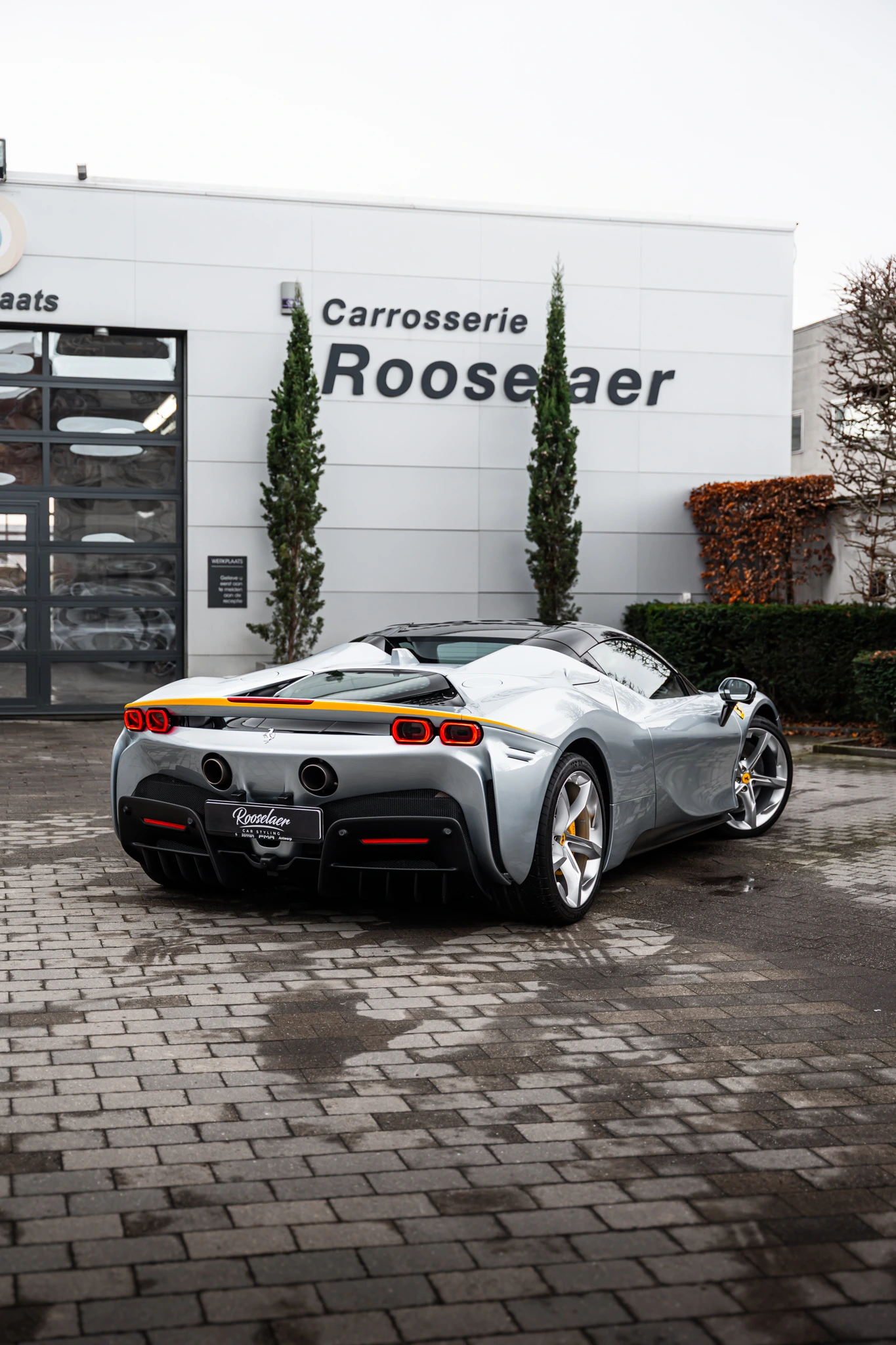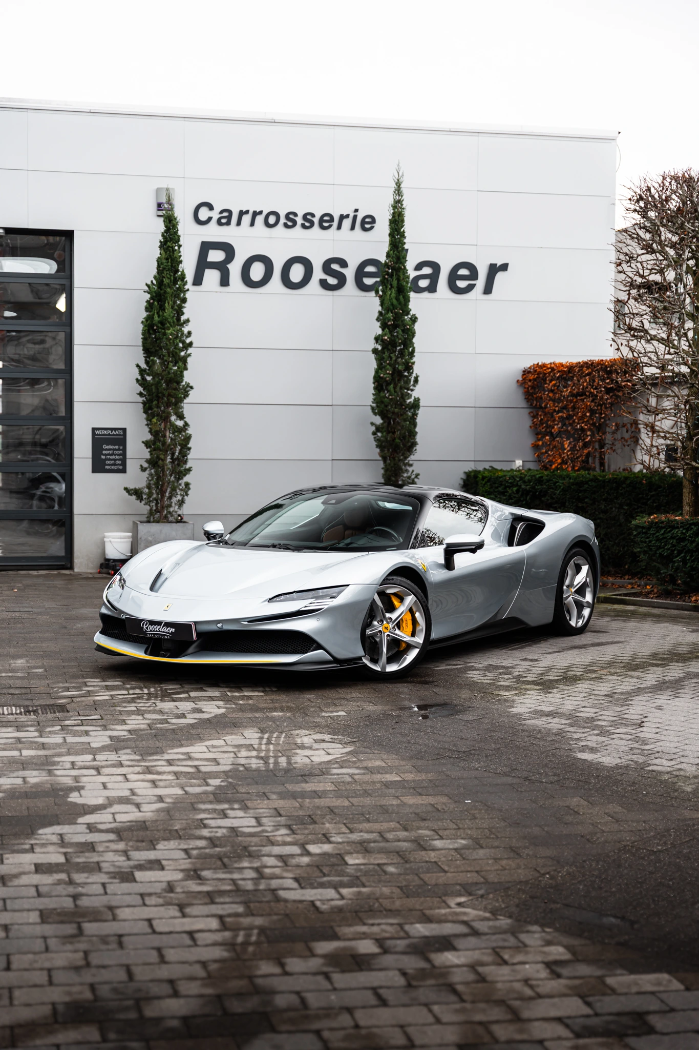 Voor deze SF90 hebben wij een hoogwaardige 2-laags Gyeon Synchro coating aangebracht. Dit geavanceerde coatingsysteem combineert extreme glans met maximale bescherming. De eerste laag zorgt voor diepe lakversterking en een intense, natte uitstraling, terwijl de tweede laag een sterke hydrofobe werking toevoegt. Water, vuil en remstof hechten zich minder snel vast aan de lak, waardoor de auto langer schoon blijft en eenvoudiger te onderhouden is.